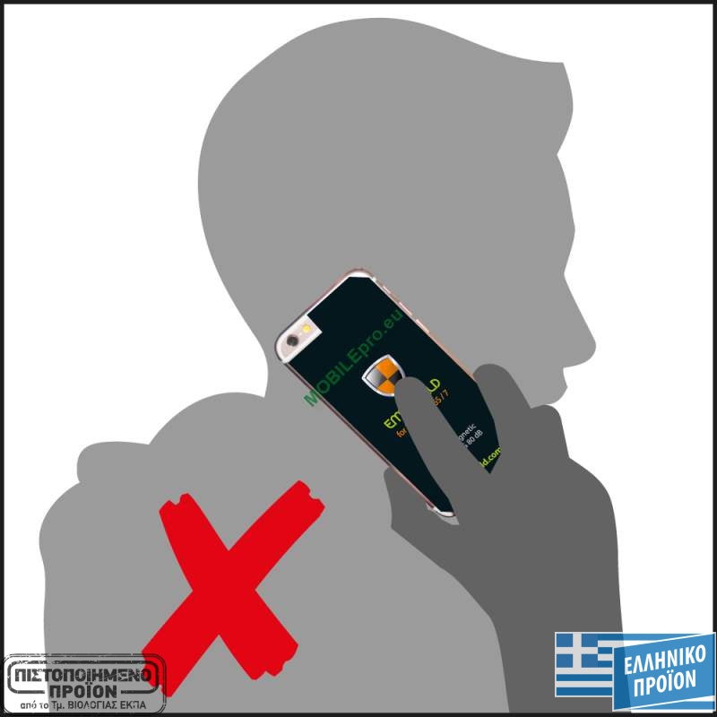 • Επιστημονικές μελέτες έχουν δείξει ότι ακόμα και με τη χρήση EMR SHIELD δεν προστατεύεστε από την ακτινοβολία όταν μιλάτε με το κινητό κολλημένο στο αυτί, εάν οι κλήσεις δεν είναι σύντομες